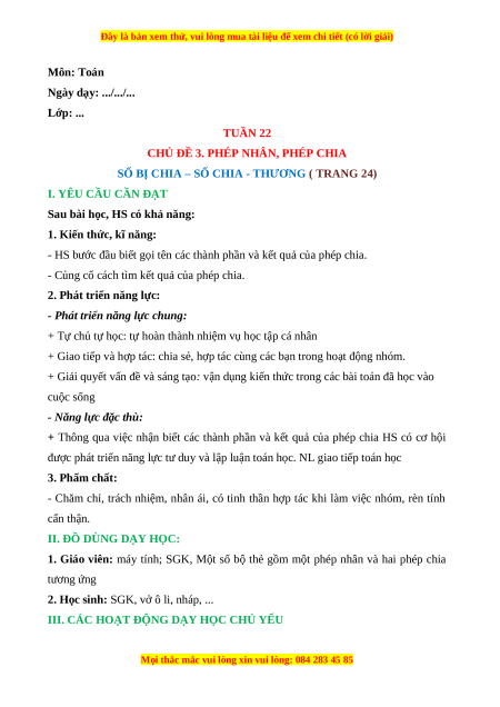 CHỦ ĐỀ 3. PHÉP NHÂN, PHÉP CHIA
