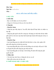 Ngày dạy: ....../......./...... L p: ớ ... BÀI 51: S C Ố Ó BA CHỮ S ( Ố 3 TI T Ế ) I. M C Ụ TIÊU 1. Ki n t ế h c ứ - Đ c và ọ vi t ế đư c các ợ s có ba ch ố s ữ ố - C ng côc ủ v c ề u t ấ o s ạ c ố a ủ các số có ba ch s ữ ố 2. Năng l c: ự - Năng l c ự chung: + Năng l c ự giao ti p, ế h p ợ tác: Trao đ i ổ , th o ả lu n ậ để th c ự hi n ệ các nhi m ệ vụ h c ọ t p. ậ + Năng l c ự gi i ả quy t ế v n ấ đ ề và sáng t o: ạ S ử d ng ụ các ki n ế th c ứ đã h c ọ nh m ằ gi i ả quy t