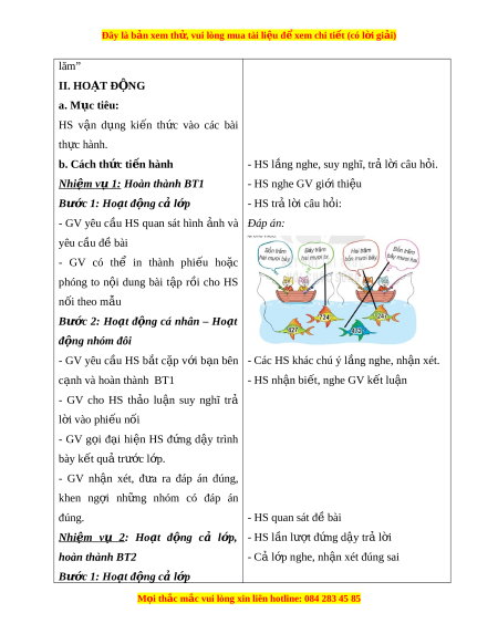 Đây là bản xem th , vu ử i lòng mua tài li u ệ đ xe ể m chi ti t (c ế ó l i ờ gi i ả ) lăm” II. HOẠT Đ N Ộ G a. Mục tiêu: HS v n ậ d ng ụ ki n ế th c ứ vào các bài th c ự hành. b. Cách th c ứ ti n hàn ế h - HS l ng ắ nghe, suy nghĩ, tr l ả i ờ câu h i ỏ . Nhi m ệ v 1: