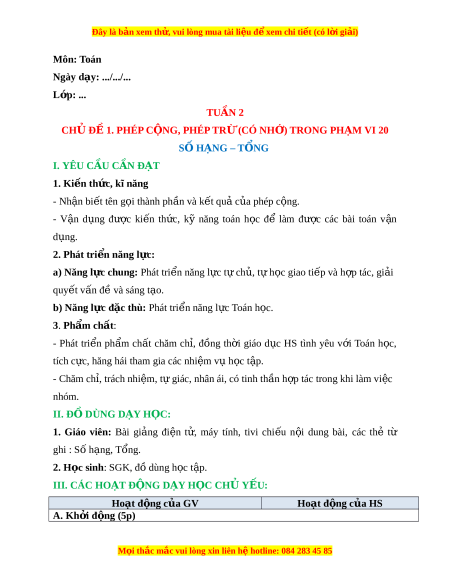 Ngày dạy: .../.../... L p: ớ ... TUẦN 2 CH Đ Ủ Ề 1. PHÉP C N