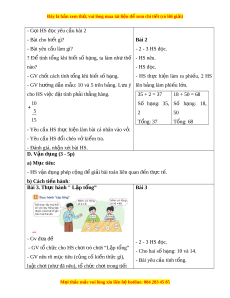I. YÊU CẦU CẦN ĐẠT 1. Ki n t ế h c, kĩ ứ năng - Nh n bi ậ t ế tên g i ọ thành ph n và k ầ t ế qu c ả a ủ phép c ng. ộ - V n ậ d ng ụ đư c ợ ki n ế th c, ứ kỹ năng toán h c ọ để làm đư c ợ các bài toán v n ậ d ng. ụ 2. Phát tri n n ể ăng l c: ự a) Năng l c