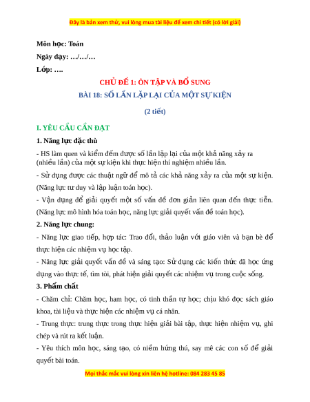 I. YÊU CẦU CẦN ĐẠT 1. Năng l c đ ự c t ặ hù - HS làm quen và ki m ể đ m ế đư c ợ s l ố n l ầ p l ặ i ạ c a ủ m t ộ kh năng ả x y r ả a (nhi u l ề ần) c a ủ m t ộ s ki ự n khi ệ th c hi ự n t ệ hí nghi m ệ nhi u l ề n. ầ - Sử d ng ụ đư c ợ các thu t