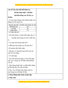 ai → Có hai kh năng x ả y ả ra. + Ch i ơ nhi u l ề n, ki ầ m ể đ m ế đư c ợ s l ố n ầ đoán đúng. → GV trình chi u ế (ho c ặ treo) hình nh ả Kh i ở đ ng cho H ộ S nh n ậ bi t ế : K t ế qu 100 ả lần ném bóng đư c ghi ợ nh n ậ vào b ng. ả - GV dẫn d t ắ HS vào bài h c: ọ Đ t ể ính