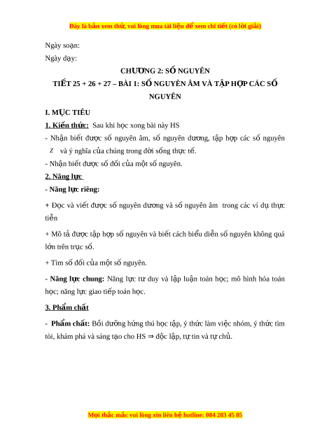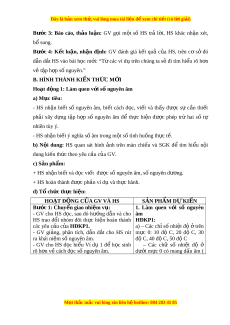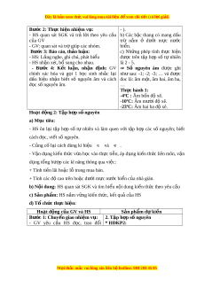 ơ và số nguyên âm trong các ví dụ th c ự ti n ễ + Mô tả đư c ợ t p ậ h p ợ s ố nguyên và bi t ế cách bi u ể di n ễ s ố nguyên không quá l n t ớ rên tr c s ụ ố. + Tìm s đ ố i ố c a ủ m t ộ s nguyên. ố - Năng l c ự chung: Năng l c ự tư duy và l p ậ lu n ậ toán h c; ọ mô hình hóa toán h c; ọ năng l c ự giao ti p ế toán h c. ọ 3. Ph m ẩ chất - Phẩm ch t ấ : Bồi dư ng h ỡ ng t ứ hú h c ọ t p, ý t ậ h c l ứ àm vi c nhóm ệ , ý th c t ứ ìm