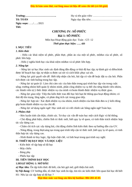 Bài 1: SỐ PHỨC