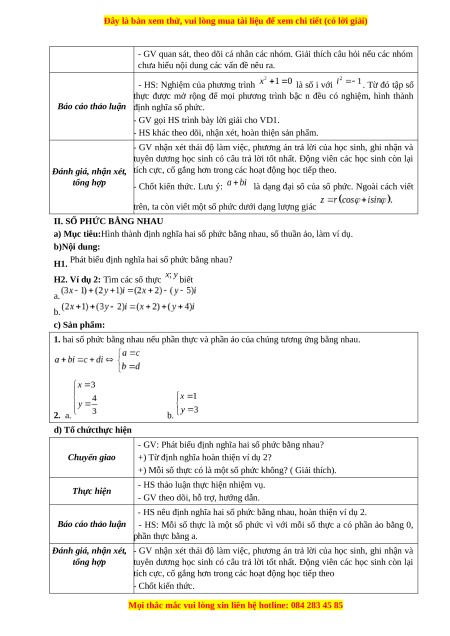 II. SỐ PHỨC BẰNG NHAU