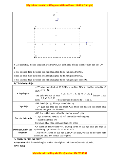 - HS biểu diễn các số phức lần lượt là các