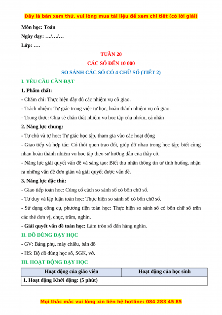 - Tư duy và lập luận toán học: Thực hiện so sánh số có bốn chữ số.