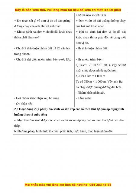 2.2 Hoạt động 2 (7 phút): So sánh và sắp xếp các số theo thứ tự qua áp dụng tình