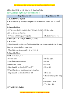 - Thực hành vận dụng so sánh 2 số có 3 chữ số b. Cách tiến hành: