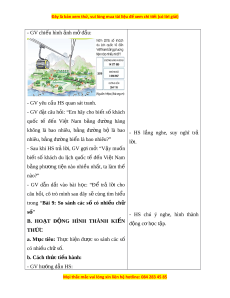 - GV yêu cầu HS quan sát tranh. - GV đ t ặ câu h i ỏ : “Em hãy cho bi t ế s ố khách quốc tế đ n ế Vi t ệ Nam b ng ằ đư ng ờ hàng không là bao nhiêu, b ng ằ đư ng ờ bộ là bao - HS l ng ắ nghe, suy nghĩ trả nhiêu, b ng ằ đư ng bi ờ n l ể à bao nhiêu?” l i ờ . - Sau khi HS tr l ả i ờ , GV g i ợ m : ở “V y m ậ u n ố bi t ế số khách du l ch ị qu c ố tế đ n ế Vi t ệ Nam b ng ằ phư ng ơ ti n nào ệ nhi u ề nh t ấ , ta làm thế nào?” - GV d n ẫ d t ắ vào bài h c: ọ “Để trả l i ờ cho câu h i
