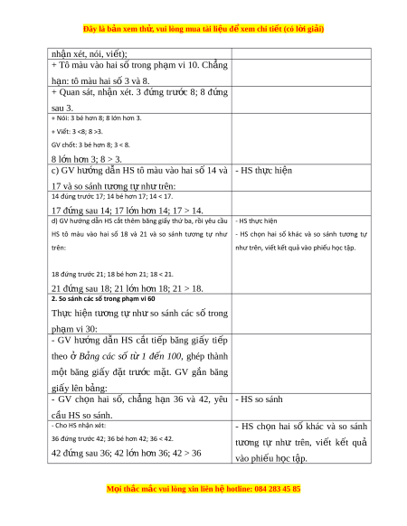 ơ tự như so sánh các số trong ph m ạ vi 60: - GV g n ắ ph n ầ còn l i ạ trong b ng ả các s ố đ n ế 100 lên b ng ả (có th không c ể n c ầ t ắ r i ờ ) - GV khoanh tròn vào hai s , ố chăng h n ạ 62 và - HS nhận xét: 67, yêu cầu HS so sánh.