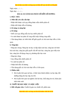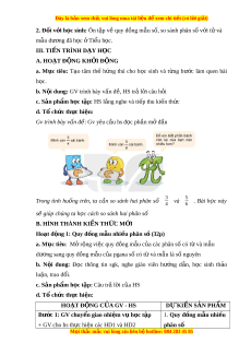 2. Kĩ năng và năng l c ự a. Kĩ năng: + Bi t ế cách quy đ ng m ồ u hai ẫ hay nhi u phân s ề ố + So sánh đư c ợ hai phân s cùng m ố u ho ẫ c ặ không cùng m u. ẫ + V n ậ d ng đ ụ ư c ợ các ki n t ế h c đ ứ ể gi i ả quy t ế các bài toán th c t ự i n có l ễ iên quan. b. Năng l c: ự - Năng l c chung: ự Năng l c ự t duy và ư l p l ậ u n ậ toán h c; ọ năng l c ự mô hình hóa toán h c; ọ năng l c ự gi i ả quy t ế v n đ ấ ề toán h c; ọ năng l c ự giao ti p ế toán h c; ọ năng l c ự s d ử ng ụ công c , ph ụ ư ng ơ ti n ệ h c ọ toán - Năng l c r ự iêng: + Quy đồng m u nhi ẫ u phân s ề ố + So sánh hai phân số: + Nh n bi ậ t ế hỗn số dư ng. ơ + V n ậ d ng gi ụ i ả các bài toán th c t ự i n có l ễ iên quan. 3. Ph m ẩ chất