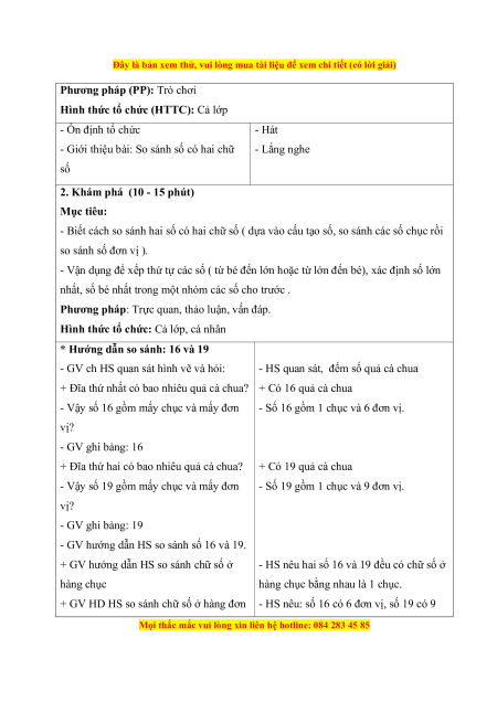 - Giới thiệu bài: So sánh số có hai chữ - Lắng nghe số 2. Khám phá (10 - 15 phút) Mục tiêu: