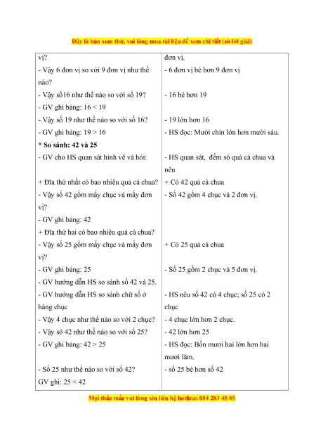 - GV hướng dẫn HS so sánh số 42 và 25.