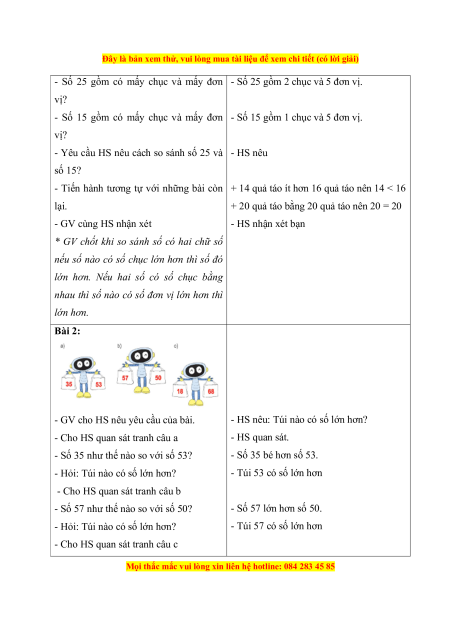 Giáo án So sánh số có hai chữ số Toán lớp 1 Kết nối tri thức