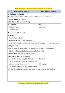 - HS: Bộ đồ dùng học toán 1 (mô hình, que tính, ghim, ....)