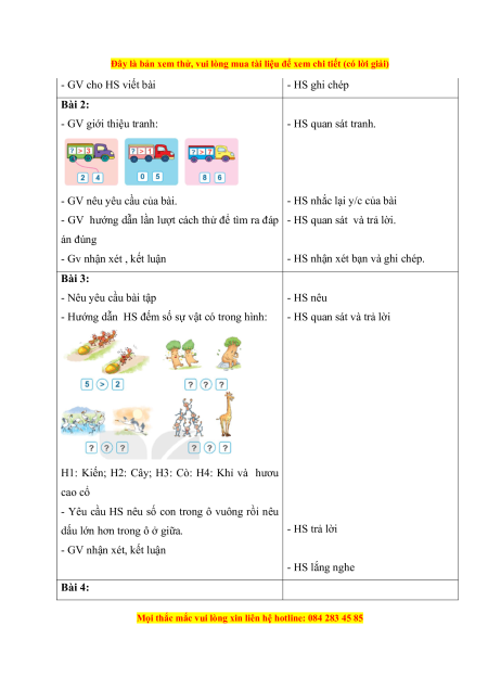 Đây là bản xem thử, vui lòng mua tài liệu để xem chi tiết (có lời giải) - GV cho HS viết bài - HS ghi chép Bài 2: - GV giới thiệu tranh: - HS quan sát tranh.