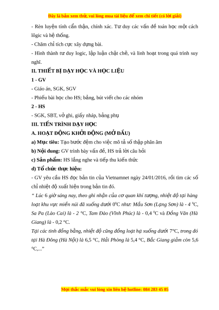 III. TIẾN TRÌNH DẠY H C Ọ A. HOẠT Đ N Ộ G KH I Ở Đ N Ộ G (M Đ Ở U Ầ ) a) M c t ụ iêu: T o b ạ ư c đ ớ ệm cho vi c m ệ ô tả số th p phân âm ậ b) N i