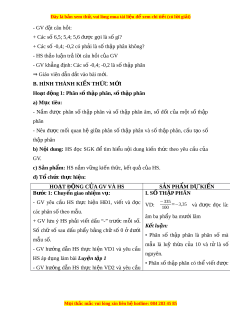 B. HÌNH THÀNH KI N Ế TH C Ứ M I Ớ Hoạt đ ng 1: ộ Phân số th p phâ ậ n, s t ố h p phân ậ a) M c t ụ iêu: - N m ắ đư c ợ phân số th p ậ phân và số th p ậ phân âm, số đ i ố c a ủ m t ộ số th p ậ phân - Nêu đư c ợ m i ố quan hệ gi a ữ phân số th p ậ phân và s ố th p ậ phân, c u ấ t o ạ số th p phân ậ b) N i ộ dung: HS đ c ọ SGK để tìm hi u ể n i ộ dung ki n ế th c ứ theo yêu c u ầ c a ủ GV. c) Sản ph m ẩ : HS n m ắ v ng ki ữ n t ế h c, ứ k t ế qu c ả a ủ HS.