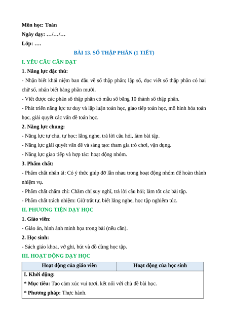 BÀI 13. SỐ THẬP PHÂN (1 TIẾT)