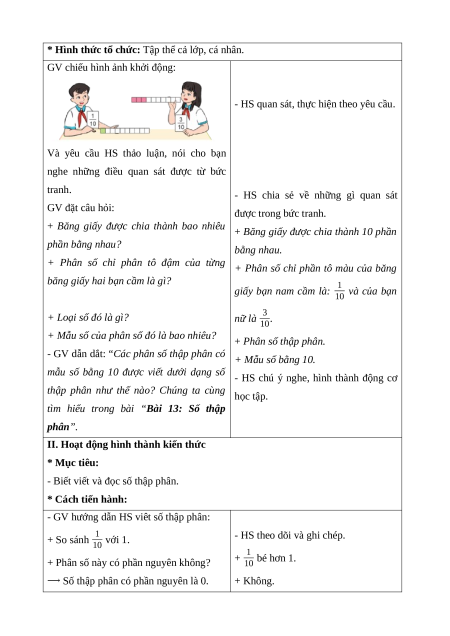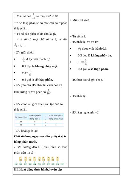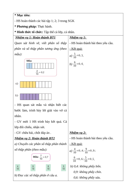 - Nhận biết khái niệm ban đầu về số thập phân; lập số, đọc viết số thập phân có hai