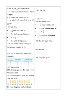 - Biết viết và đọc số thập phân. * Cách tiến hành: