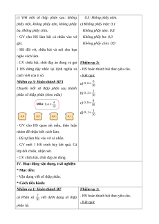 phân và số thập phân tương ứng (theo - Kết quả: mẫu): 5 a) =0,5. 10 6 b) =0,6. 10