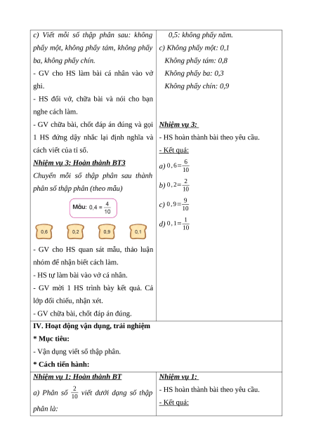 - Viết được các phân số thập phân có mẫu số bằng 10 thành số thập phân.
