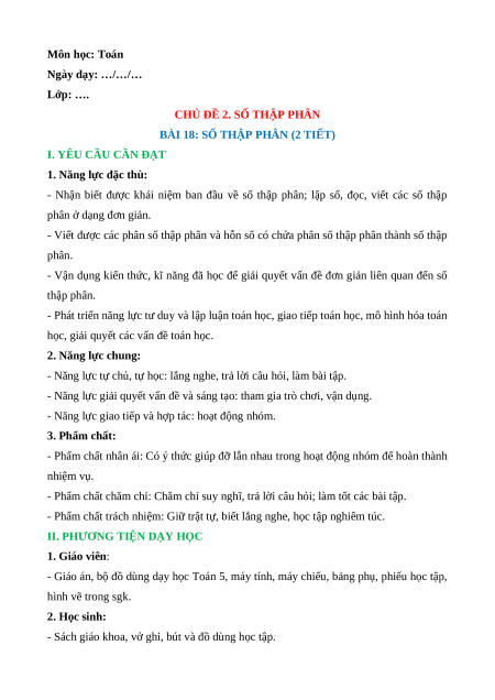 BÀI 18: SỐ THẬP PHÂN (2 TIẾT)