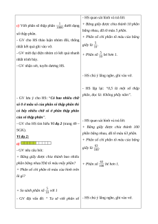 dưới dạng số thập phân - HS hoàn thành bài tập theo yêu cầu. 100 - Kết quả: như thế nào?” 1 - GV hướng dẫn HS: + Phân số bé hơn 1 1000 1 1 + Phân số