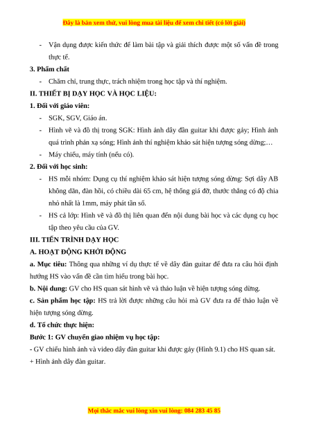 Ngày soạn:…/…/… Ngày dạy:…/…/… BÀI 9: SÓNG DỪNG I. MỤC TIÊU 1. Kiến thức