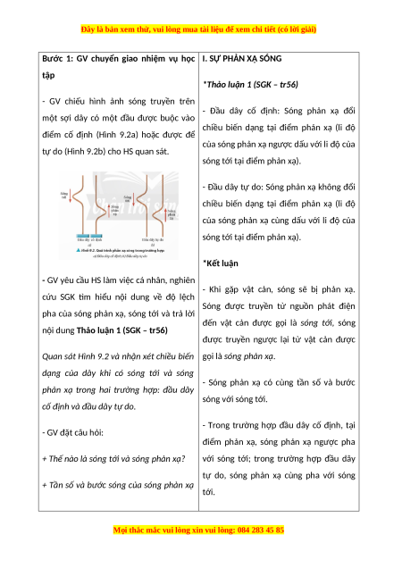 - HS mô tả và nêu các đặc điểm về tần số, bước sóng và độ lệch pha của sóng tới và sóng phản xạ.