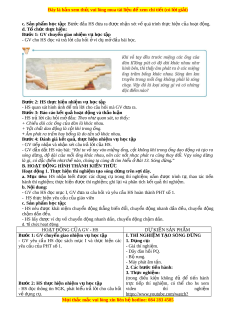 ụ tiêu: HS nhận bi t ế đư c ợ các d ng ụ cụ trong thí nghi m ệ ; n m ắ đư c ợ trình t , ự thao tác ti n ế hành thí nghi m ệ ; th c ự hi n đ ệ ư c ợ thí nghi m ệ ; ghi l i ạ và phân tích k t ế qu t ả hí nghi m ệ . b. N i ộ dung: - GV cho HS đ c ọ m c ụ I, GV đ a ư ra câu h i ỏ và yêu c u H ầ S hoàn thành PHT s 1. ố - HS th c ự hi n yê ệ u cầu c a ủ giáo viên c. Sản ph m h ẩ c ọ t p ậ : - HS nêu đư c ợ khái ni m ệ chuy n ể đ ng ộ th ng ẳ bi n ế đ i ổ , chuy n ể đ ng ộ nhanh d n ầ đ u, ề chuy n ể đ ng ộ chậm dần đều. - HS lấy đư c ợ ví d v ụ c ề huy n đ ể ng nha ộ nh dần, chuy n đ ể ng c ộ hậm dần. d. Tổ chức hoạt động: HOẠT Đ N Ộ G C A Ủ GV - HS D K Ự IẾN S N Ả PH M Ẩ Bư c ớ 1: GV chuy n ể giao nhi m v ệ h ụ c ọ t p ậ I. THÍ NGHI M Ệ T O Ạ SÓNG D N Ừ G - GV yêu c u ầ HS đ c ọ sách m c ụ I và th c ự hi n ệ các 1. D n ụ g c : ụ yêu cầu c a ủ PHT s 1. ố - Giá thí nghi m ệ . - Dây đàn h i ồ PQ. - B rung. ộ - Máy phát âm tần. 2. Các bư c ớ ti n ế hành: 3. Th c ự nghi m: ệ (trong đi u ề ki n ệ không đủ để ti n ế hành Bư c ớ 2: HS th c ự hi n ệ nhi m ệ v h ụ c ọ t p ậ tr c ự ti p ế thí nghi m ệ , có thể cho hs xem - HS đ c ọ thông tin SGK, phát bi u ể trả l i ờ cho câu h i ỏ video thí nghi m ệ về d ng c ụ . ụ https://www.youtube.com/watch? M i ọ thắc m c