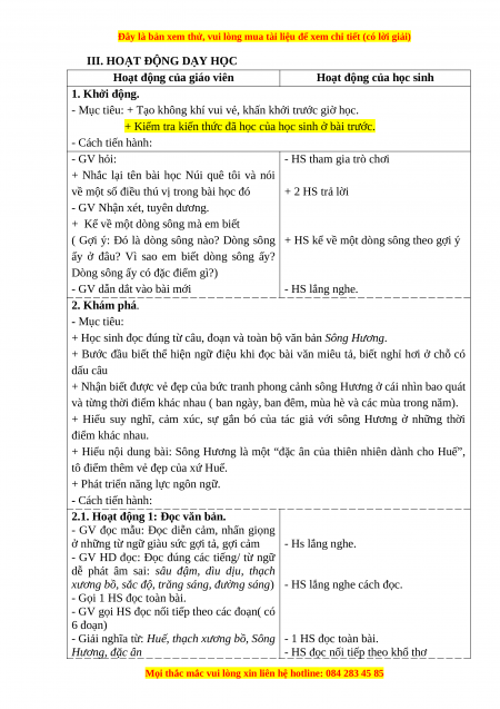 III. HOẠT ĐỘNG DẠY HỌC