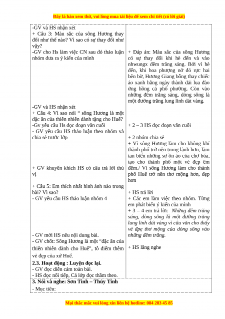 - Hiểu nội dung bài: Sông Hương là một “đặc ân của thiên nhiên dành cho Huế”,