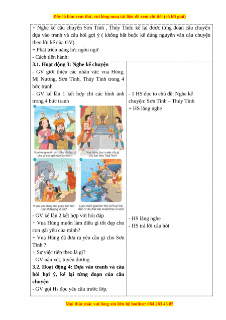 + Nghe kể câu chuyện Sơn Tinh , Thủy Tinh; kể lại được từng đoạn câu chuyện