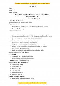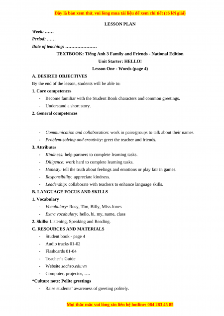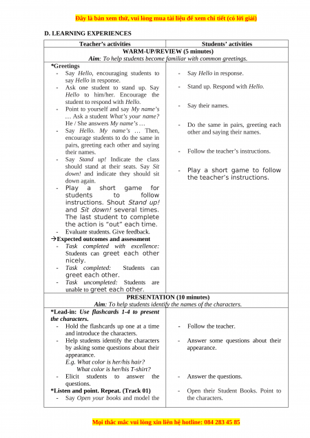 C. RESOURCES AND MATERIALS - Student book - page 4 - Audio tracks 01-02 - Flashcards 01-04 - Teacher’s Guide - Website sachso.edu.vn - Computer, projector, ….