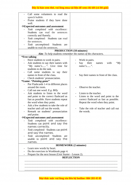 - Prepare for the next lesson (Unit Starter - Lesson 2).