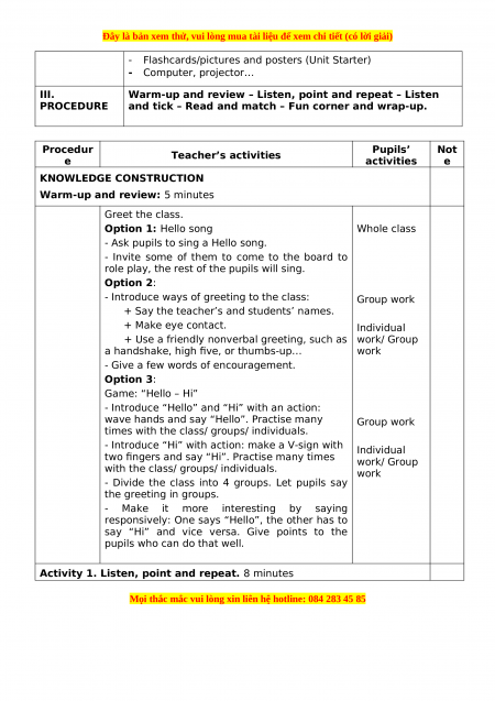 Warm-up and review – Listen, point and repeat – Listen PROCEDURE