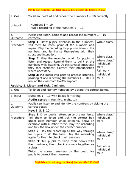 Pupils can listen, point at and repeat the numbers 1 − 10 Outcome correctly. d.