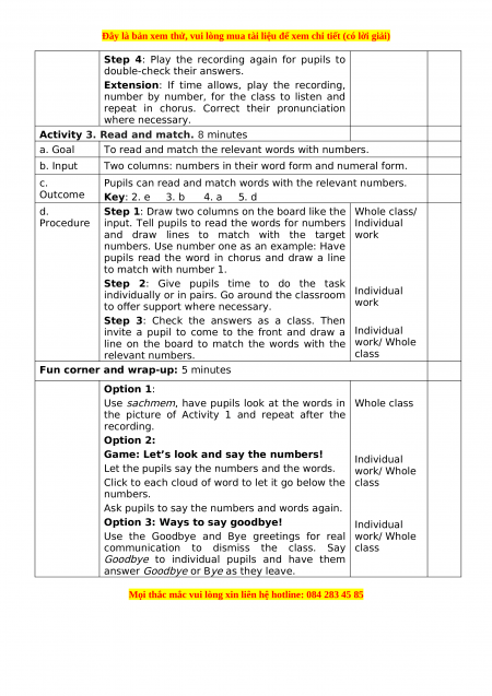 Step 1: Draw pupils’ attention to the numbers. Whole class/ Procedure