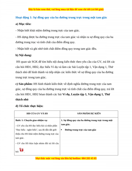 Hoạt động 1: Sự đồng quy của ba đường trung trực trong một tam giác a) Mục tiêu: