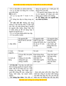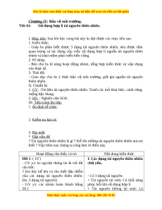 ạ tài nguyên thiên nhiên, nêu đư c ợ t m ầ quan tr ng ọ và tác d ng ụ c a ủ vi c ệ sử d ng ụ h p ợ lí ngu n ồ tài nguyên thiên nhiên và khái ni m ệ phát tri n b ể n v ề ng. ữ 2. Kĩ năng: - Rèn cho hs kĩ năng ho t ạ đ ng ộ nhóm, t ng ổ h p ợ ki n ế th c ứ và v n ậ d ng ụ vào th c ự t . ế 3. Thái đ : ộ - Giáo d c ụ cho hs ý th c ứ b o ả vệ môi trư ng, ờ giữ gìn ngu n ồ tài nguyên thiên nhiên. II. Chuẩn bị 1. GV: -Tư li u