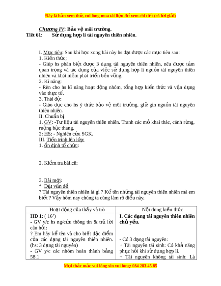Tiêt 61: S d ng h p lí tài nguyên thiên nhiên.ử ụ ợ