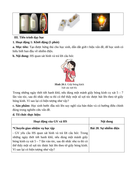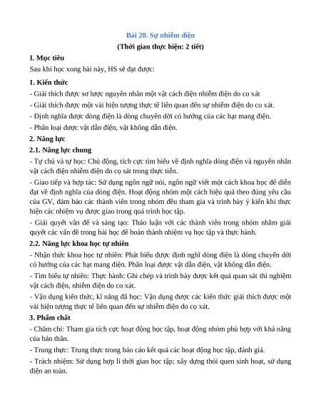 Giáo án Sự nhiễm điện Vật lí 8 Cánh diều