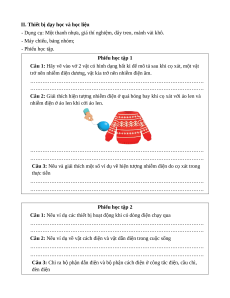 vài hiện tượng thực tế liên quan đến sự nhiễm điện do cọ xát. 3. Phẩm chất