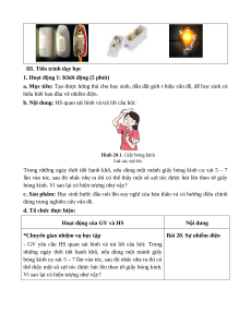 nêu các dụng cụ, cách tiến hành thí nghiệm, từ đó tổ chức cho HS trả lời các câu hỏi thảo luận trong SGK c. Sản phẩm:
