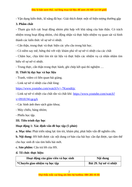 - Nhận thức khoa học tự nhiên: Phát biểu được khái niệm sự nở vì nhiệt; Nêu được