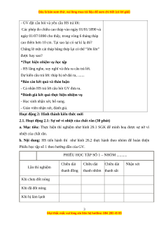 vì nhiệt của các chất; Hoạt động nhóm một cách hiệu quả theo đúng yêu cầu của GV,